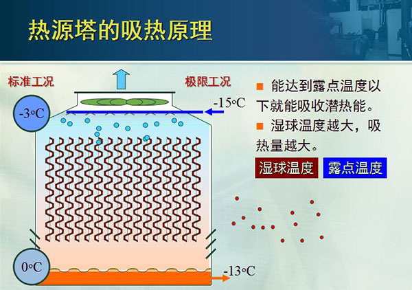2002年在辛普森董事長王志林先生等人的努力下,誕生了熱源塔熱泵系統(tǒng),將冷卻塔加以改造,利用抗凍劑溶液低溫不結冰的特性吸收了水蒸氣的能量。