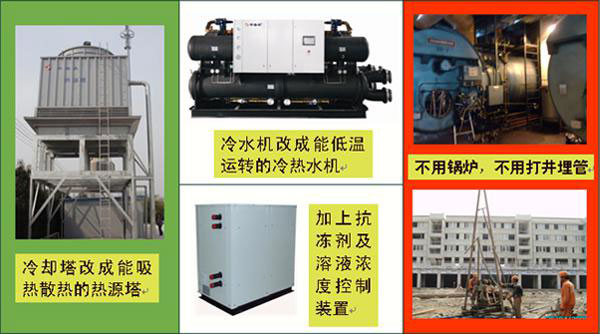 熱源塔熱泵系統(tǒng)純粹使用電力,系統(tǒng)更換十分方便,只要把冷卻塔改成夏天可以散熱、冬天可以吸熱的熱源塔,主機更換為可以低溫制熱的主機,再加上一些配套設備,即可取消鍋爐,由于施工方便、節(jié)能效果好,是既有建筑改造的可行方案。